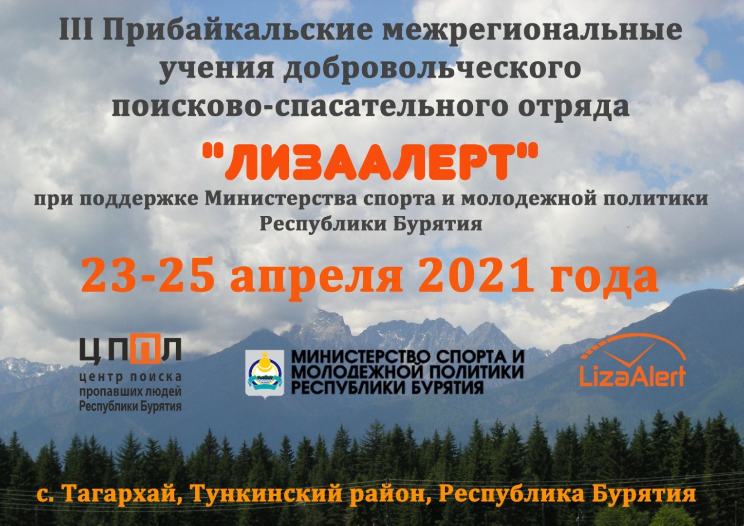 23 - 25 апреля 2021 года в Тункинском районе Республики Бурятия состоятся III Прибайкальские межрегиональные учения добровольческого поисково-спасательного отряда "ЛизаАлерт"